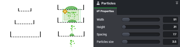 New feature: Particles now has an option for "size randomness". This can be set to a lower value to create particles of even size. This can be useful to creating solid/liquid/air state diagrams.