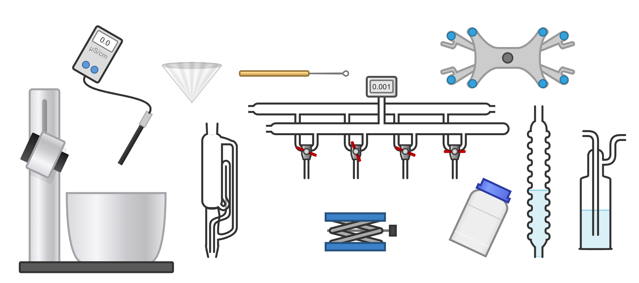 Items including the Schlenk lines, Burette holder, Fluted Filter Paper, Rotavap, etc.