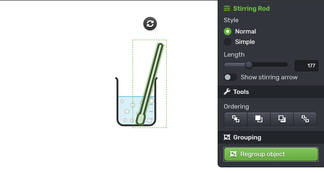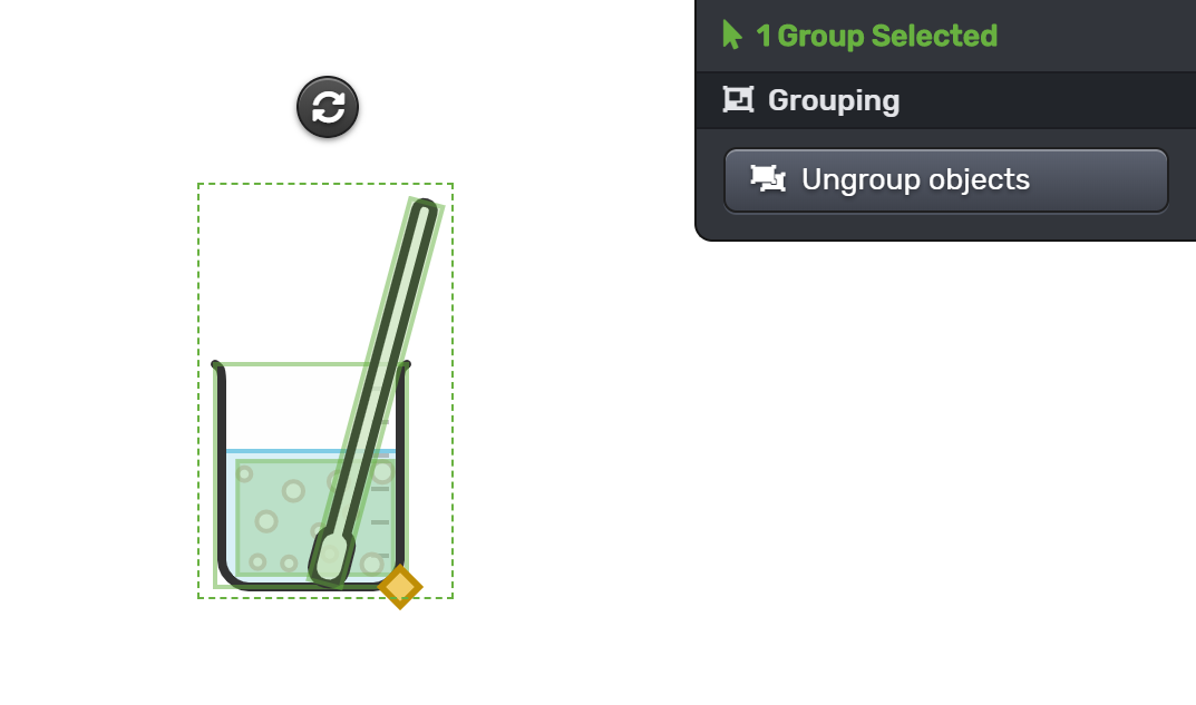 When drawing complex diagrams, you may find it useful for certain objects to be joined together. You can do so by Grouping them. Select 1 or more items (or text labels) and click the Group objects button.