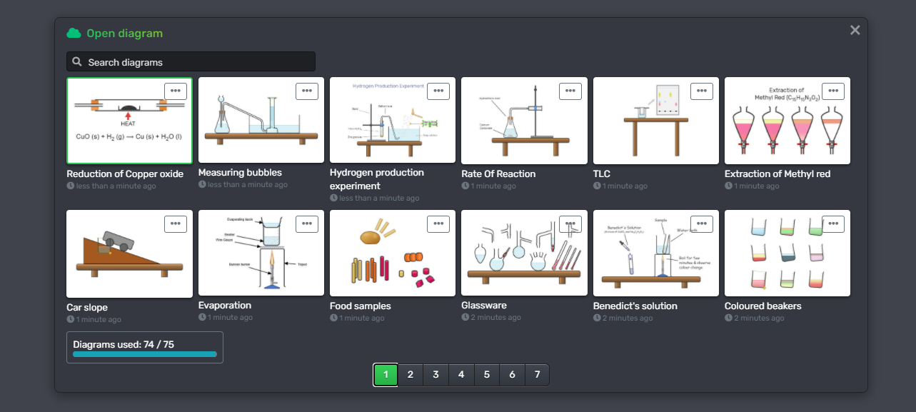 Chemix has its own Cloud service, where you can store your diagrams. This lets you come back to them later for further editing, for use as a template.